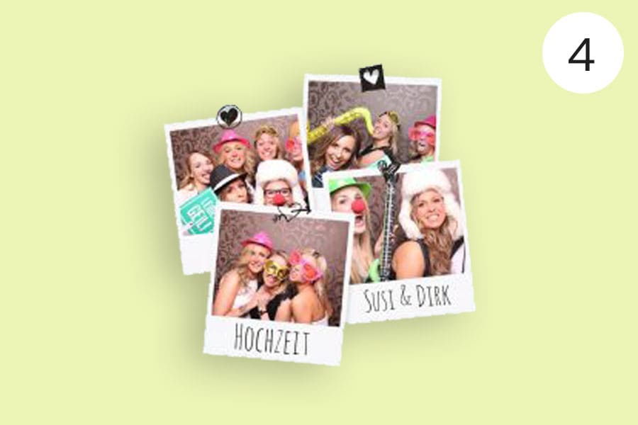 Während der Feier wird die Fotobox der Hingucker für deine Gäste – und danach, werden die besten Augenblicke der Party in Form von einzigartigen Bildern auch noch jahrelang nach dem besonderen Tag ein wahrer Hingucker sein.